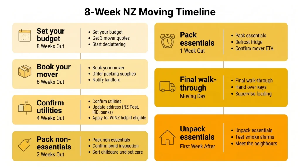 New Zealand Moving House Checklist: Complete 8-Week Guide